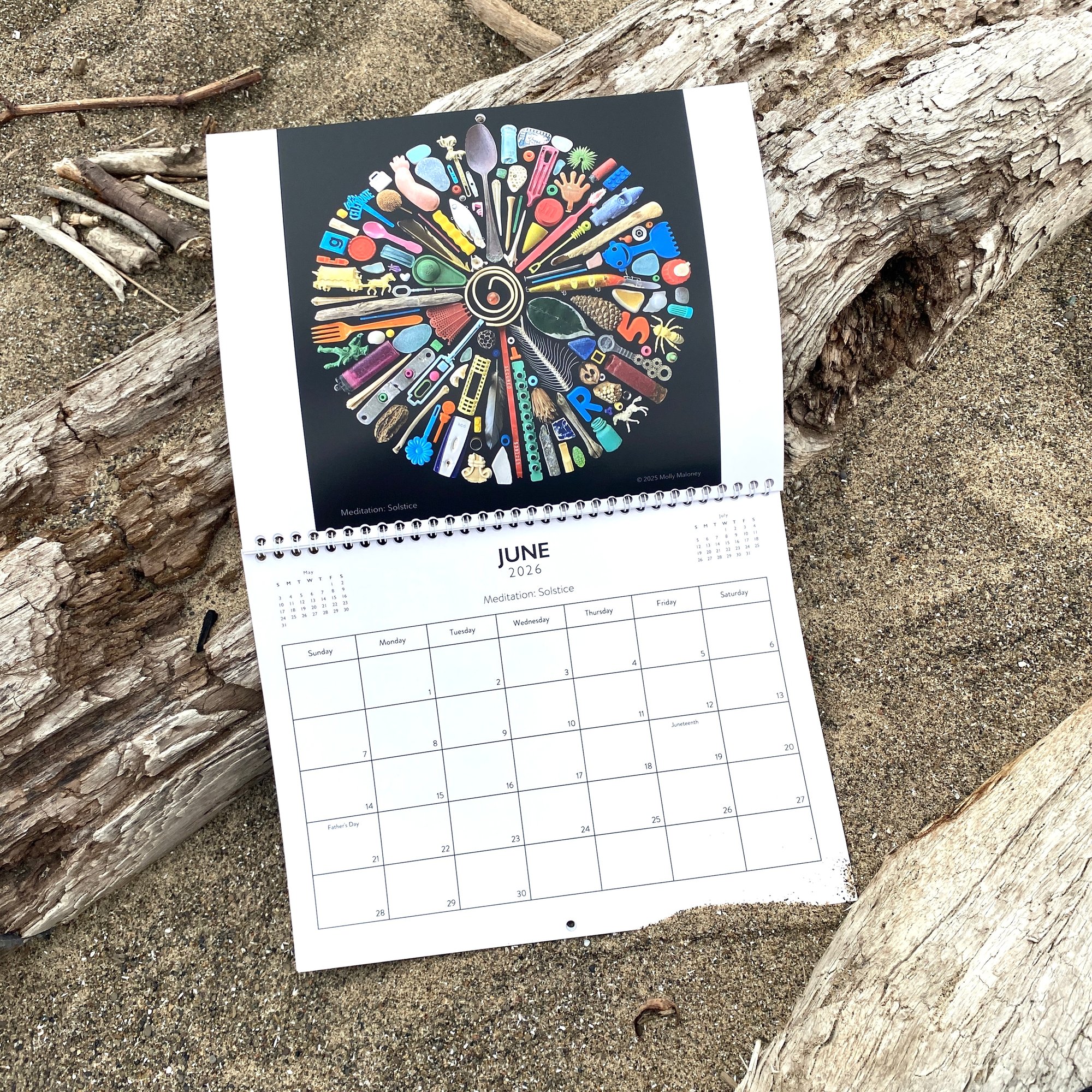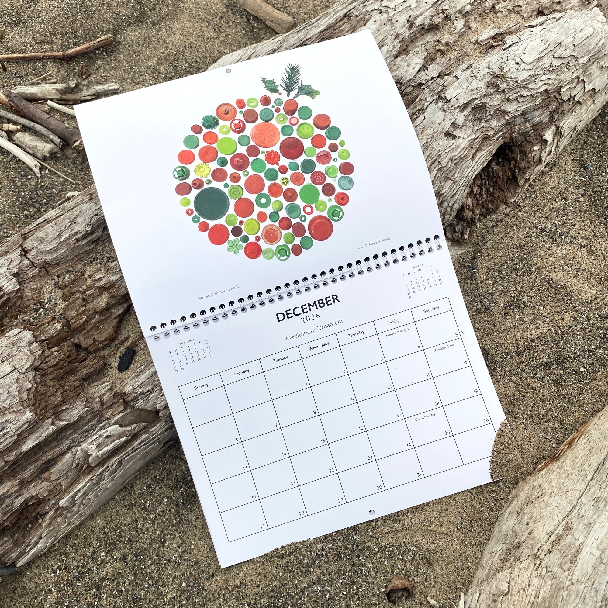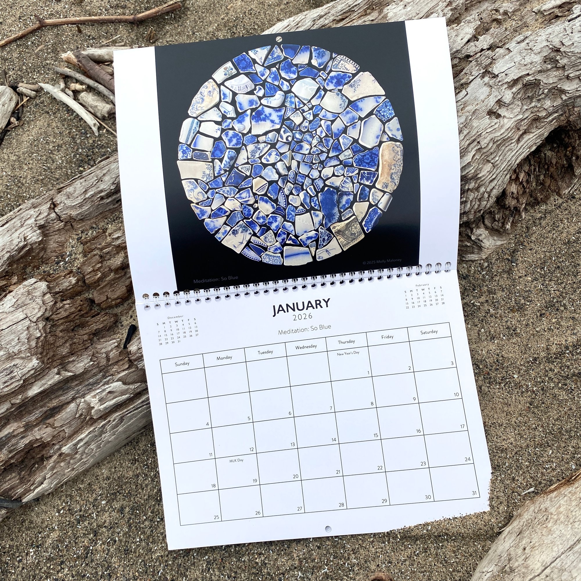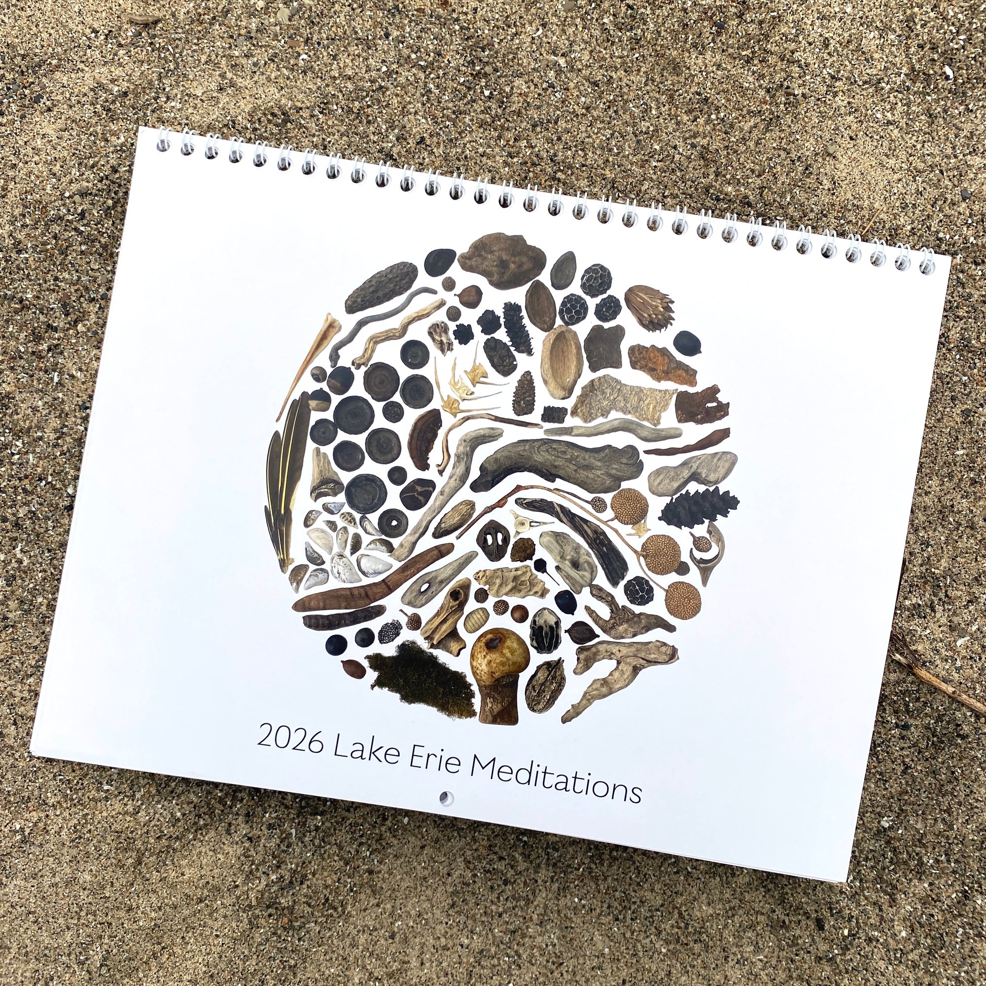 The 2026 Lake Erie Meditations calendar features 12 new flatlays created from items washed up on a small Lake Erie beach. This 11x17" calendar is printed on thick, glossy stock, bound with a white twin-loop coil, and has enough space in the grid for appointments, birthdays, etc.
