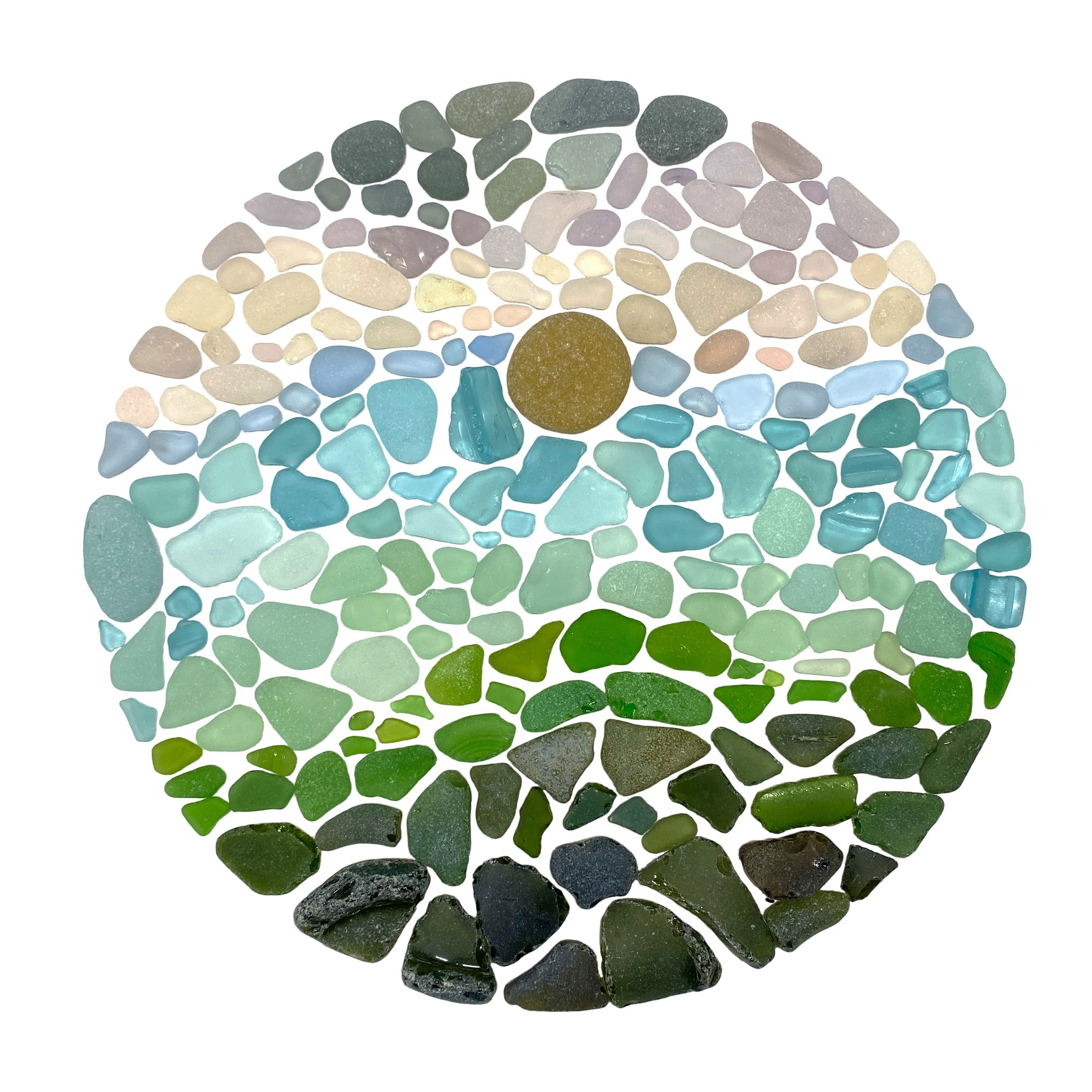 This is a signed print of a flatlay I composed in 2024, entitled Meditation: Erie Sun. It is composed entirely of glass I collected on a single, small Lake Erie beach.