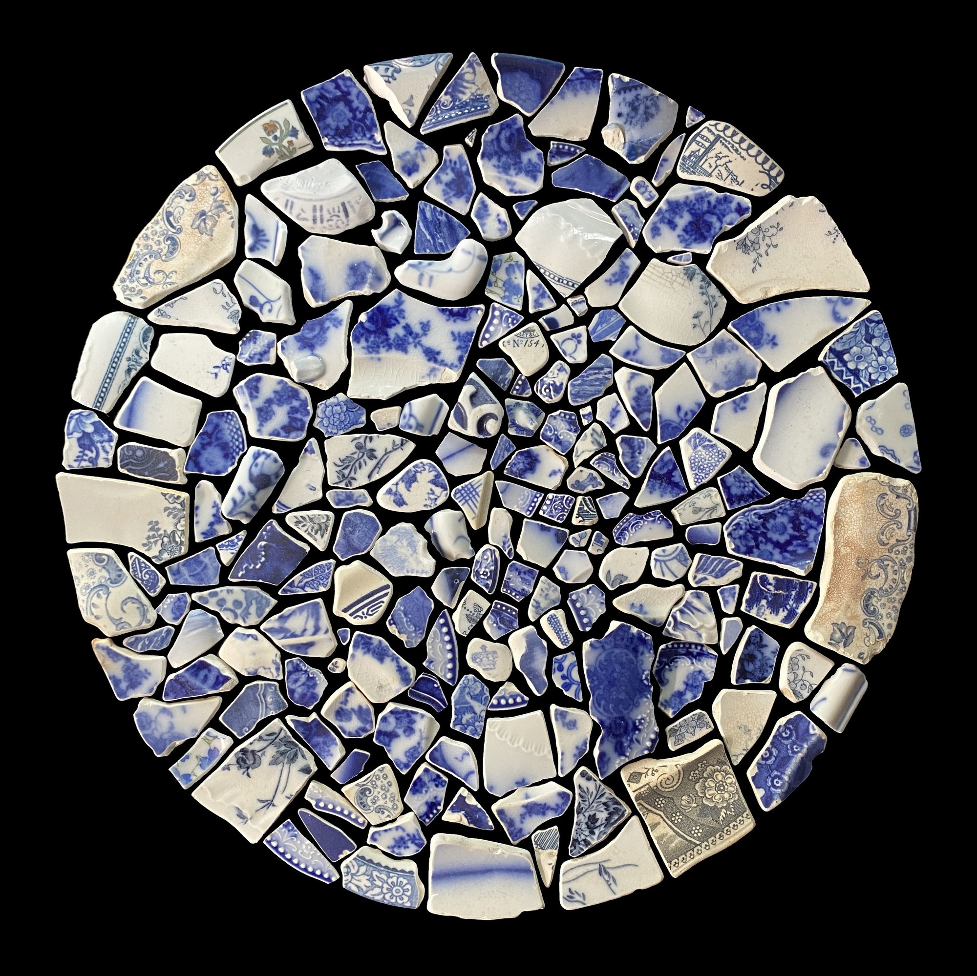 This is a signed print of a flatlay I composed in 2025, entitled Meditation: So Blue. It is composed entirely of pottery shards I collected on a single, small Lake Erie beach.