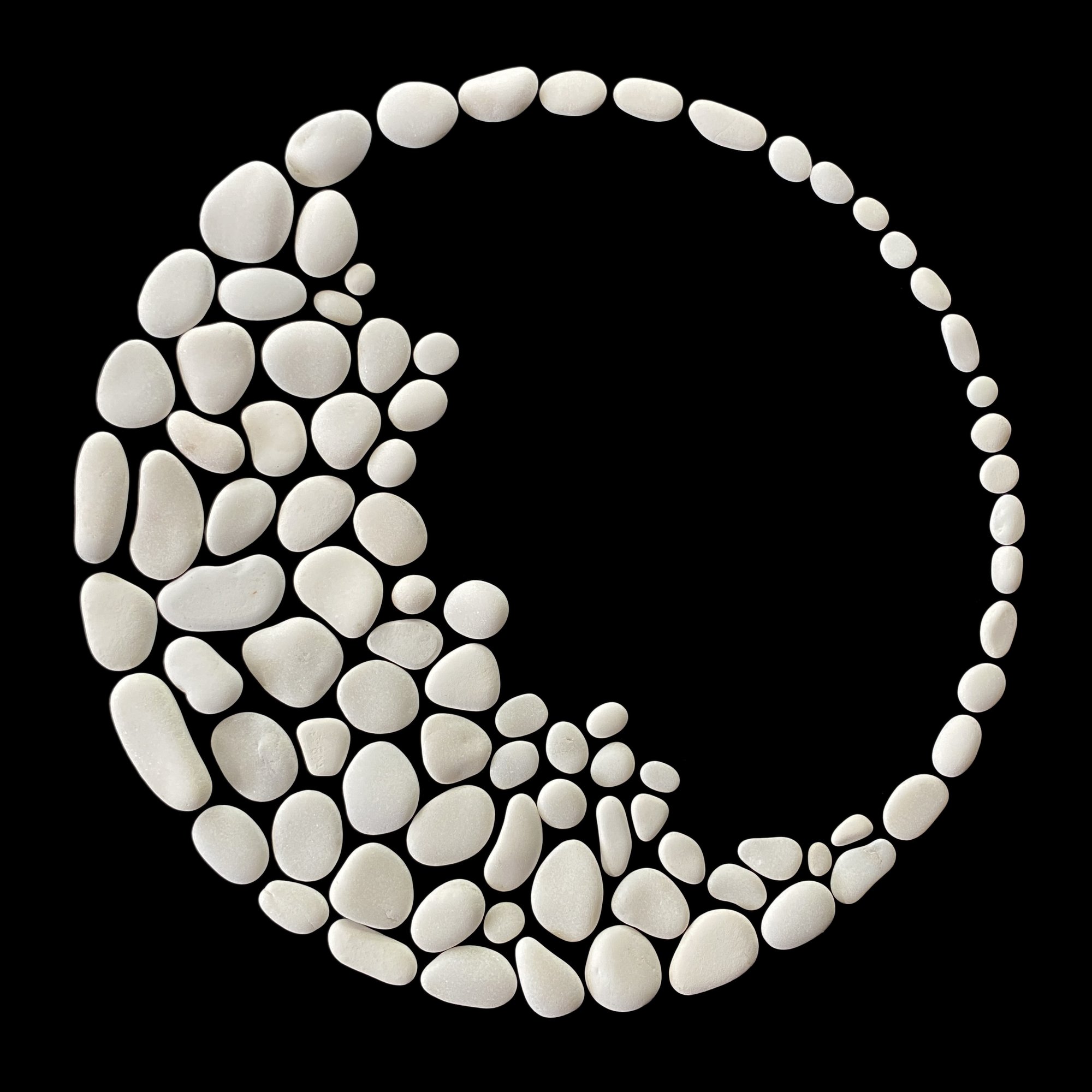 This is a signed print of a flatlay I composed in 2025, entitled Meditation: Waning. It is composed entirely of glittery white stones I collected on a single, small Lake Erie beach.